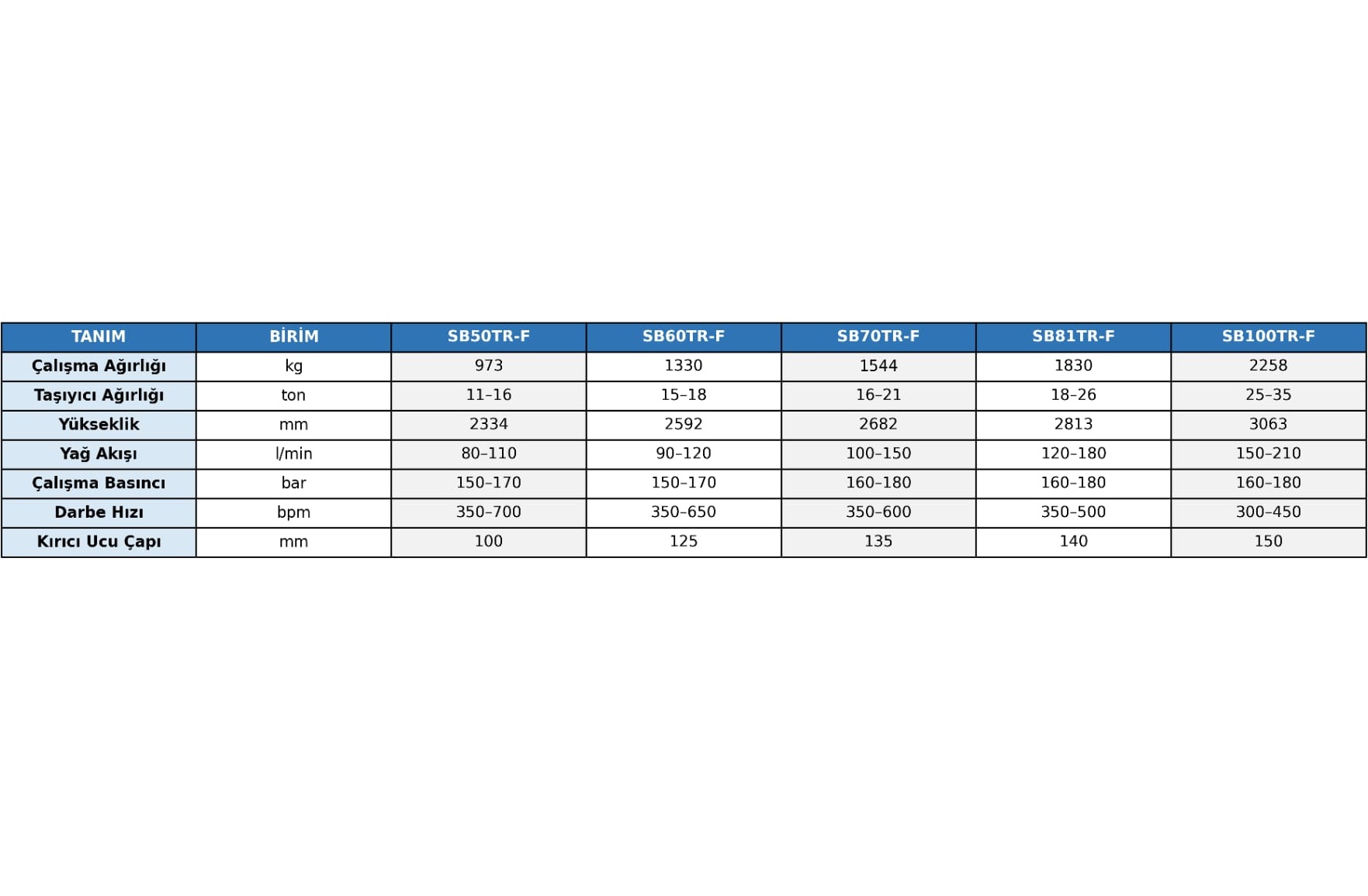 Orijinal Soosan hidrolik kaya kırıcıları, operatör dostu tasarımı ve kullanım kolaylığı ile öne çıkar. Farklı iş makinelerine uyum sağlayan geniş model ve ağırlık seçenekleri sayesinde her projeye uygun çözümler sunar.